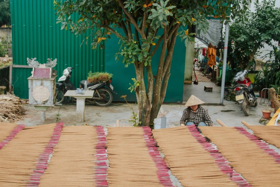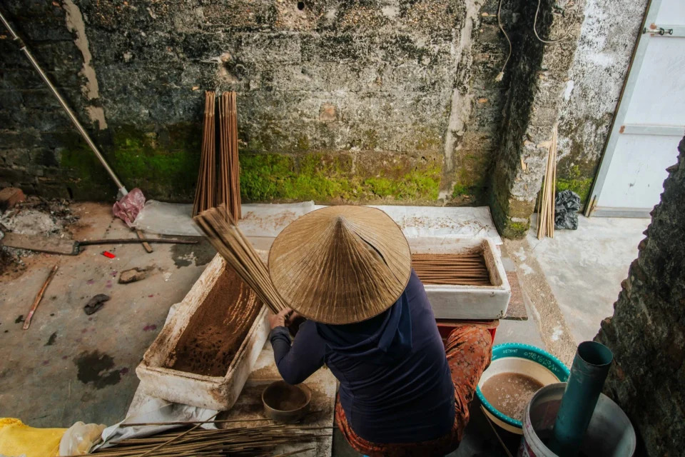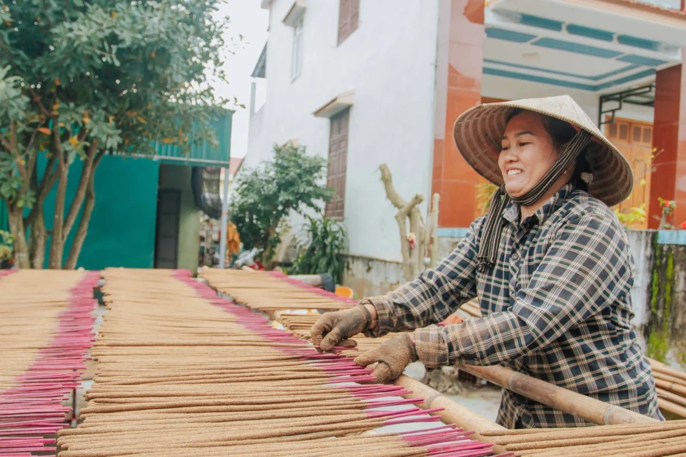 Quanh năm, họ vẫn làm nhiều công việc thời vụ khác như nông nghiệp, ngư nghiệp. Nhưng cận tết, họ gác lại tất cả để ở nhà làm hương, giúp họ hái ra tiền và cũng là cách để giữ lửa làng nghề.