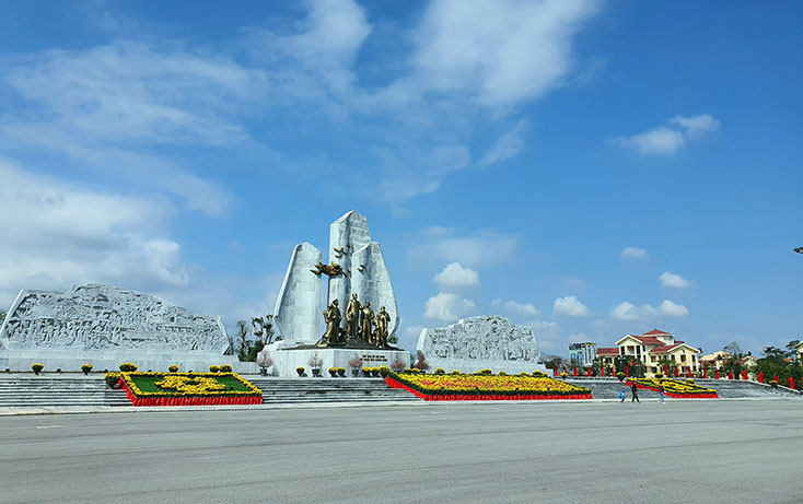 Hai bên không gian tượng đài là khu vực khán đài đại biểu sẽ tổ chức vào các dịp đại lễ của tỉnh nhà, phía trước của tượng đài bố trí không gian để đặt vòng hoa tưởng niệm.